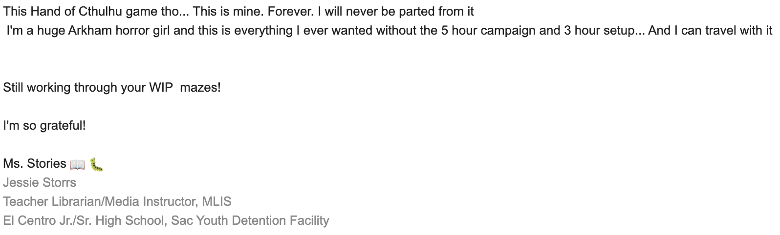 Hand of Cthulhu is an In-Hand Card Game of 18 cards. It features a never-before-seen resources dial and it only needs one hand unlike other In-Hand Games! It is thematic, resource management and planning puzzle.